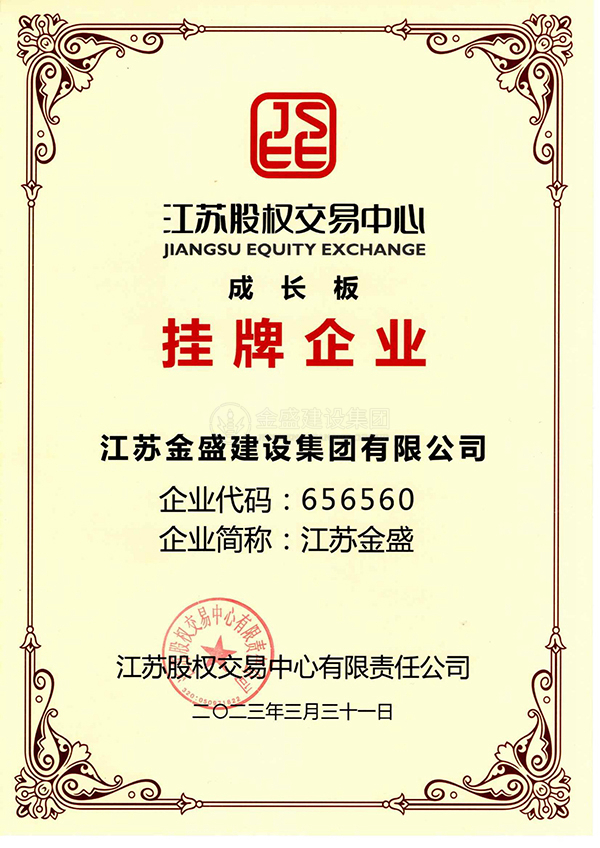 江蘇股權(quán)交易中心成長(zhǎng)板掛牌企業(yè)資質(zhì)證書